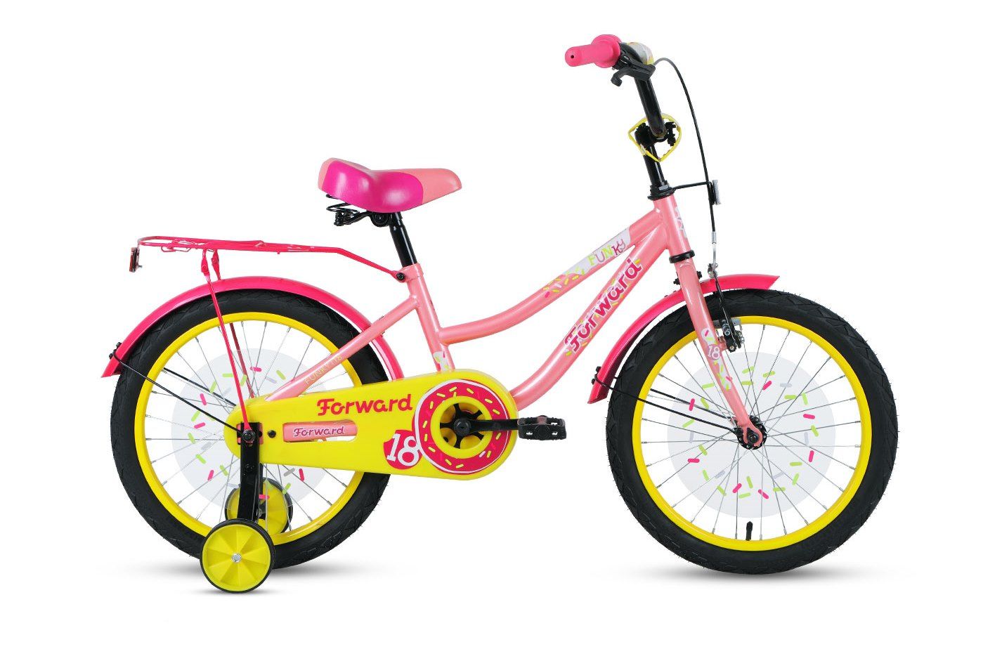 Детские велосипеды от 3 до 6 лет с диаметром колёс 16-18 дюймов — это огромная коллекция ярких, надежных, безопасных моделей авторитетных брендов, которые наш интернет-магазин предлагает на выгодных условиях. Велосипед Forward FUNKY 18 (2022) — образец современного подхода к созданию байков для юных гонщиков. Выпущен в 2022 году. Прочная и детально продуманная конструкция, удобный руль, идеально подходящие для разных покрытий колеса (18" дюймов), тормоза Ножной ( Coaster brake), обеспечивающие точное и безопасное управление, — все это делает его отличным вариантом для поездок или серьезного увлечения велоспортом.